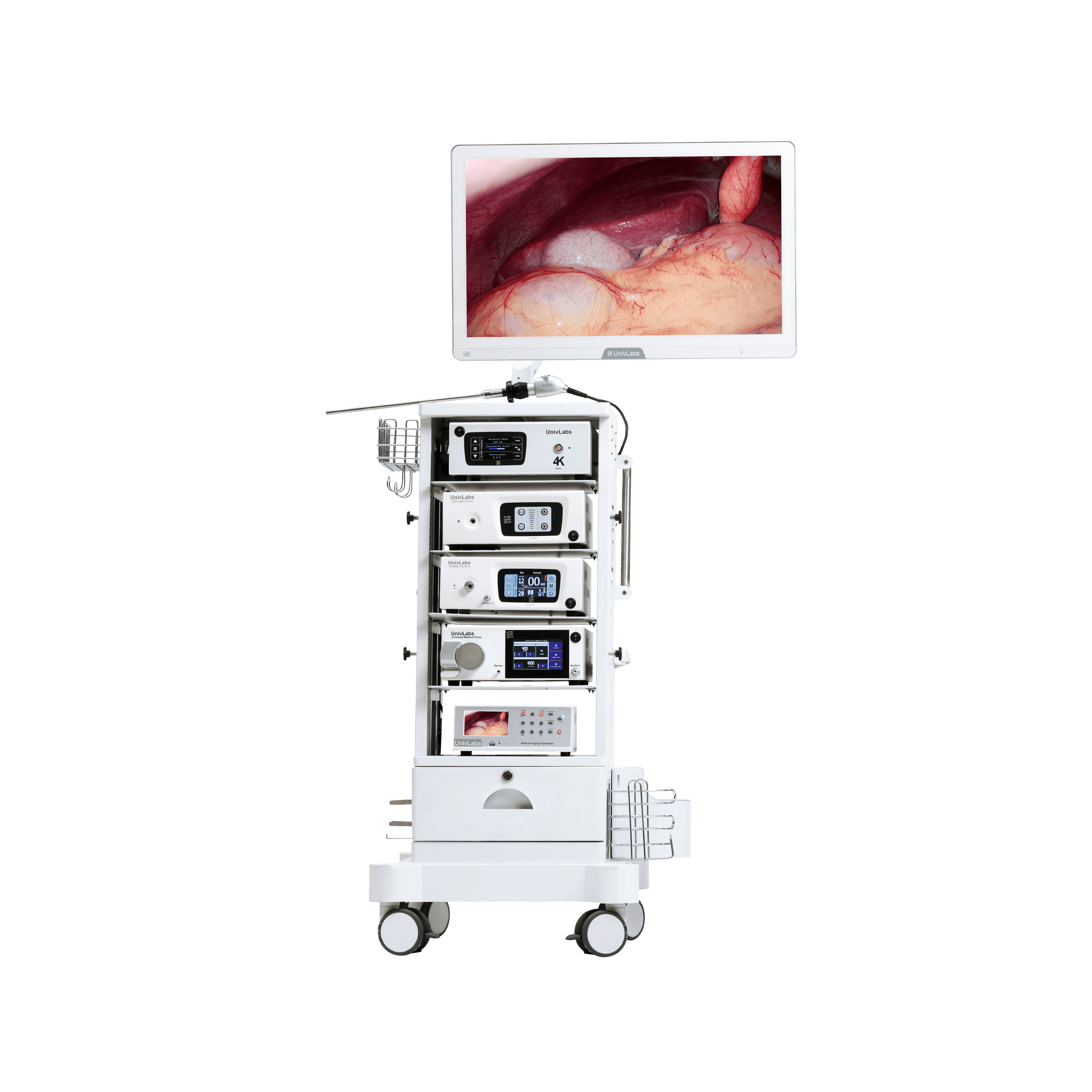 Platina Camera with Camera Head (1 Chip CMOS 4K), 27″ 4K Medical Grade Surgical Monitor, Zoom Coupler (14-32 mm), Telescope UHD 10 mm (0 or 30 degree), LED Light Source UL9000, Fiber Optic Cable (4.8 mm, 3 Meter), CO2 Insufflator UL 45-XS, Universal Medical Pump (UMP-1000), HD Digital Recorder, UniSmart Rack.
